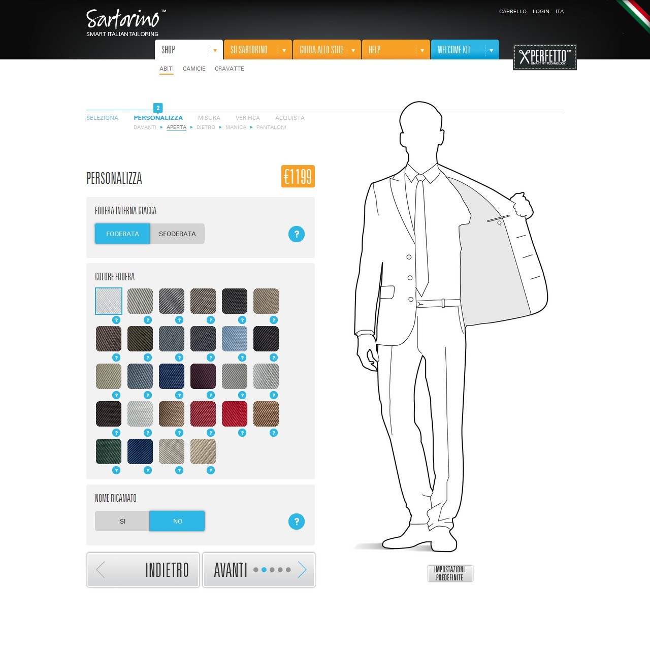 – il wizard per la personalizzazione degli abiti e delle camicie