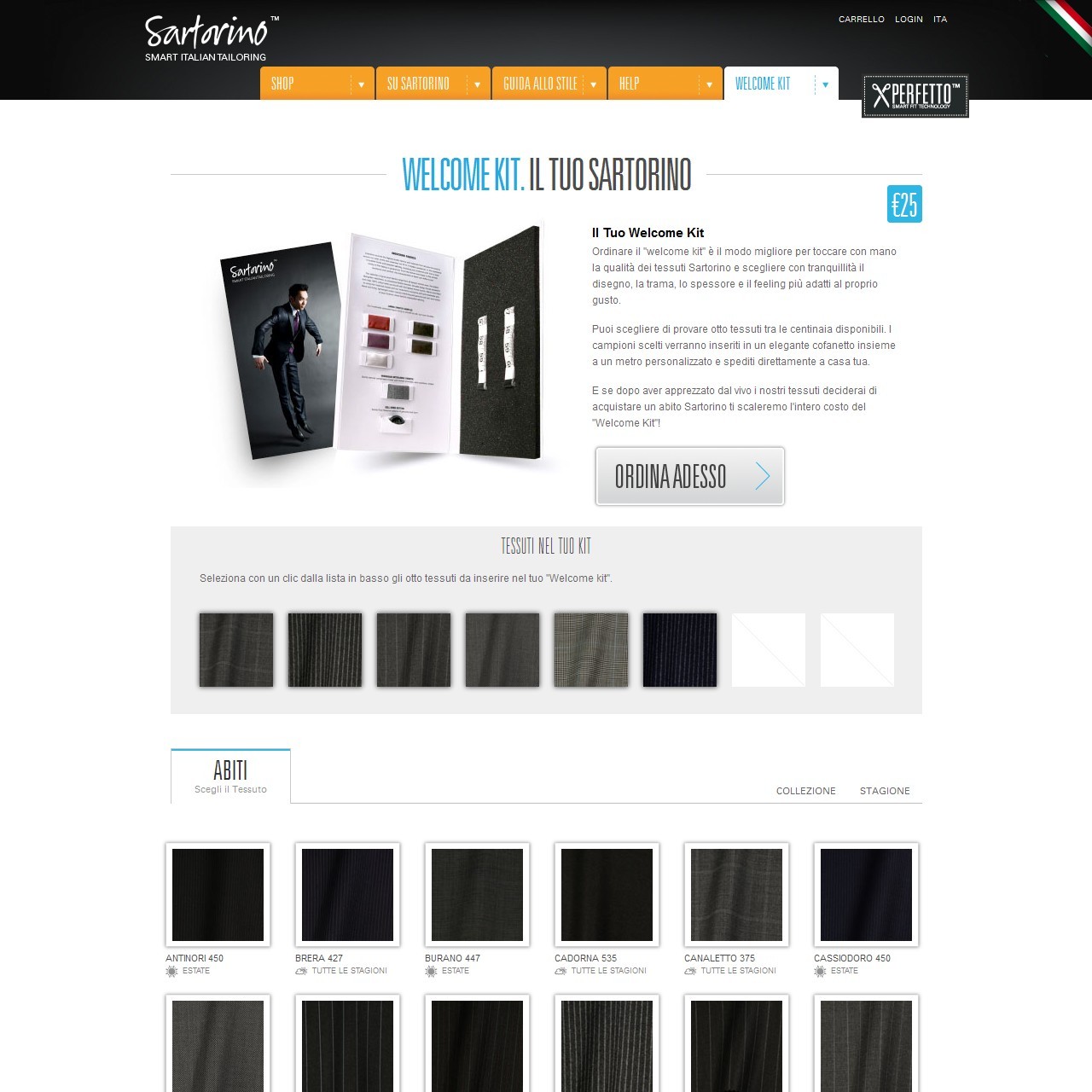 Sartorino è il primo portale al mondo che permette di ordinare online un abito sartoriale su misura, completamente personalizzabile nelle misure e nelle opzioni.